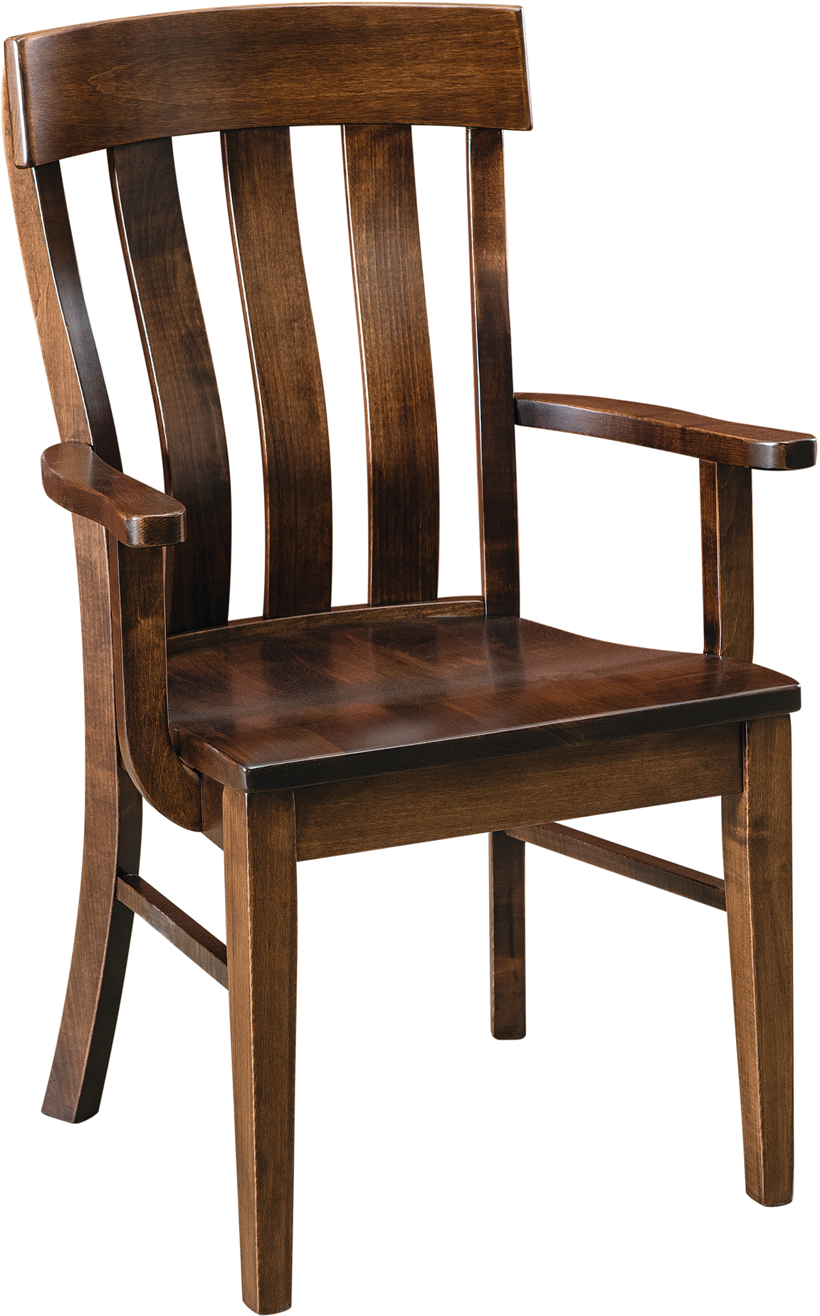 Made completely from hardwood, the Raleigh Dining Chair brings a simple elegance to your dining room. Notice the curved slats in the back and the formed seat. Resulting in optimal support for a hardwood chair. Additionally, the simplistic design of the bottom of the chair, offering a sturdy base. The Raleigh Dining Chair is shown in Brown Maple with a Harvest stain. Choose between a variety of wood species/finish and make this chair completely your own. Also, select a table from our Amish Dining Tables to make a complete dining set. This chair is also offered as an arm chair, swivel bar stool, stationary bar stool, or desk chair.