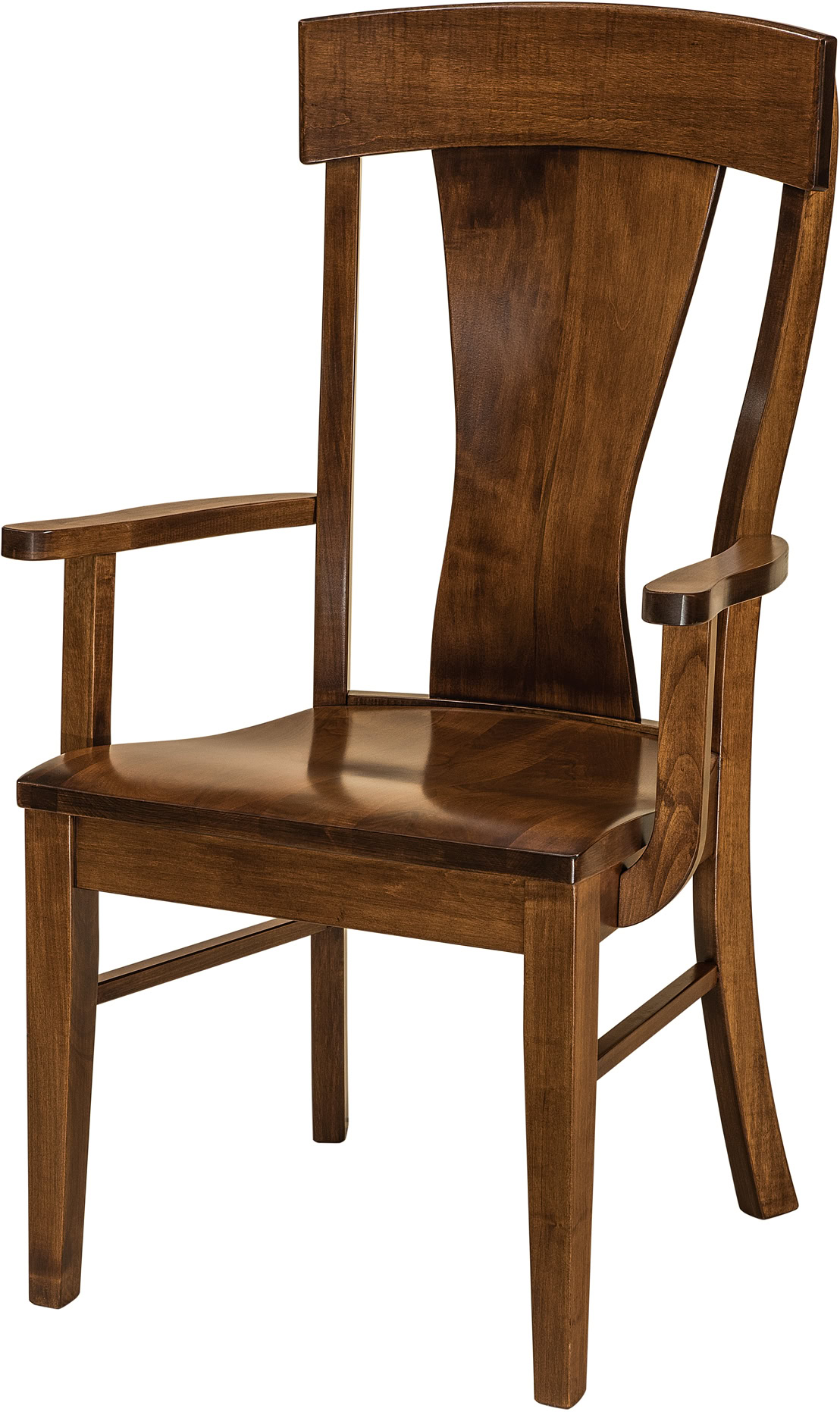 The Ramsey Dining Chair offers a modern curved back and a rich, bold finish. Designed with a classic Mission Style, this chair is available as an armchair or a side chair. Crafted from the finest hardwoods, this sturdy chair will last for years to come. With custom options available you can create the perfect piece for your home. Along with matching your personal style.
