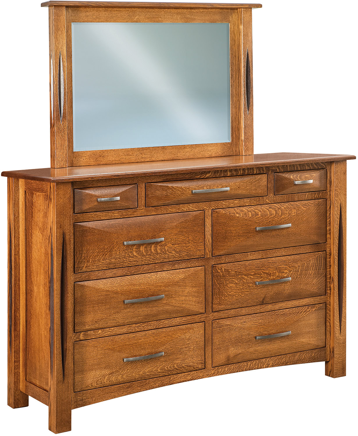 The Ravena 9 Drawer Mule Dresser from Weaver Furniture Sales includes a mirror and is designed with raised panels sides. With 9 drawers you will have ample space to store your clothes. Crafted from the finest hardwoods, this sturdy mule dresser will withstand daily use for many years to come.