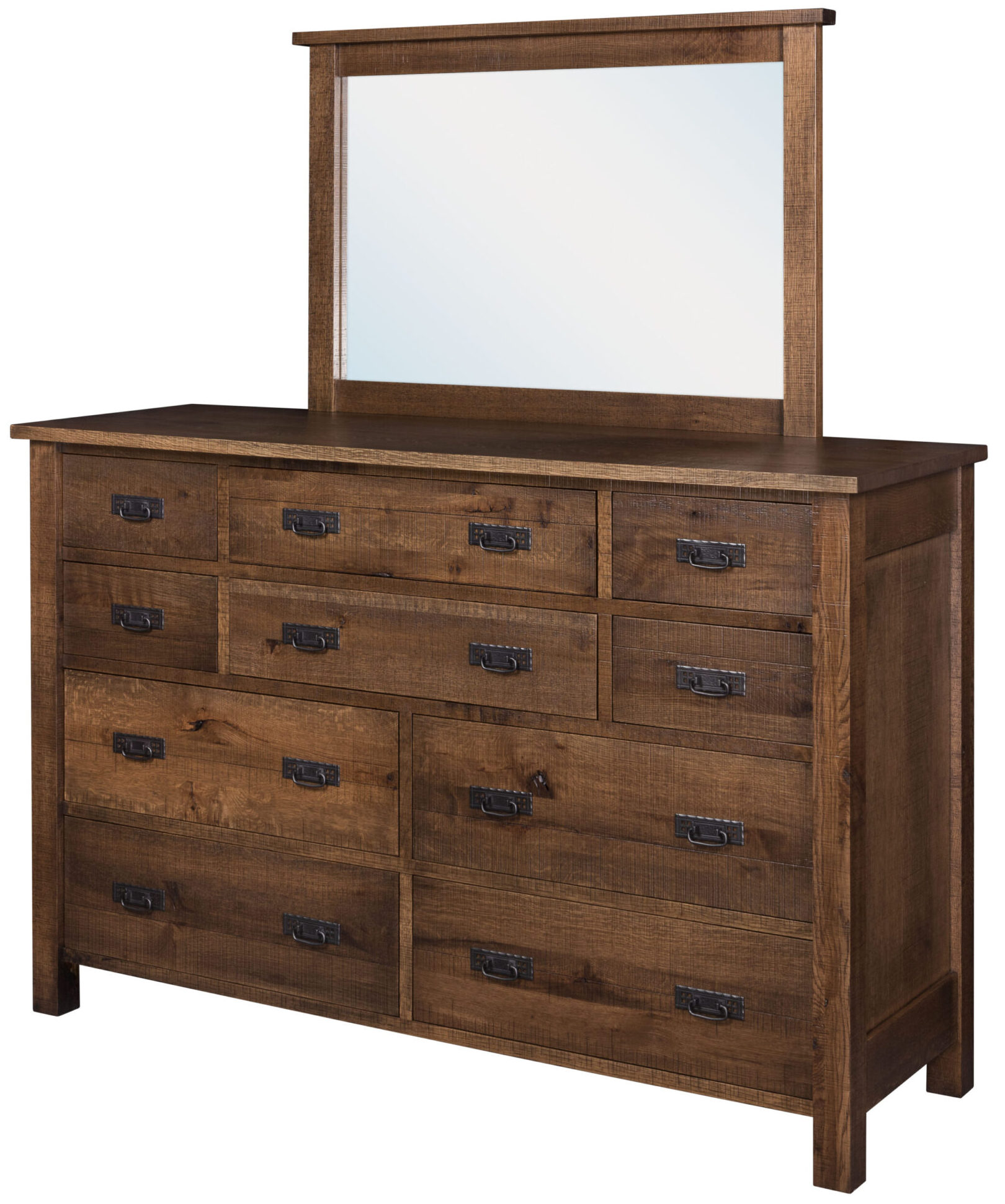 If you’re searching for a large dresser with lots of storage space, you need to take a closer look at the Regent Style Dresser with Mirror. Take style. The stately dresser is all Mission. With features like flush drawers, black Mission pull hardware and hefty posts. Take user-friendly features. The drawers open full-extension. So, you’ll enjoy easy access to everything inside. Even items at the back. Then there is construction. Amish cabinetmakers are the best in the Midwest. And they build the dresser from rustic quarter-sawn oak. Plus, the drawers come with dovetail joints. What’s more, they give the dresser a Tea and Black Glaze finish. No wonder the dresser is sturdy and heirloom-quality! A plain mirror is standard; beveled mirror is available. Ready to order? Click the “Customize this product” button below. Then, complete the customization fields. Or call 877-357-2106.