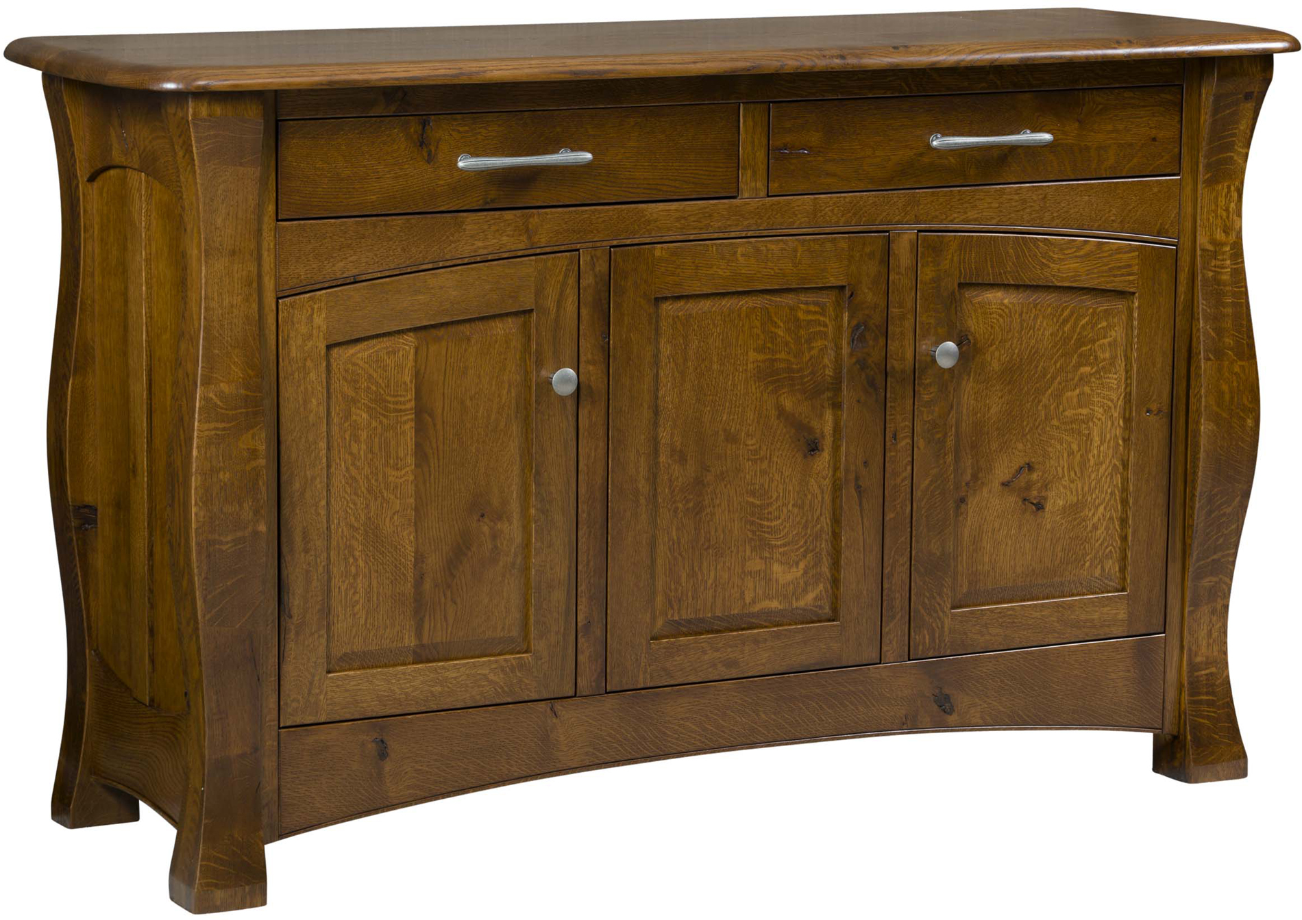 With its turned corner posts, arch motifs plus flush doors and drawers, the Reno Buffet stands apart for its sophisticated, exquisite look. Other features enhancing its appeal include the beautiful waterfall edge top. Raised panel doors. Also the absence of visible hinges. (We use hidden European hinges.) The drawers open full-extension for easy access. Also, the drawers close with a gentle push. And you can swap out the drawers for a center door or wine rack. Amish artisans build each buffet. And they use top hardwoods like oak and walnut. No wonder the buffet is so sturdy, it’s heirloom-quality! Ready to order? Click the “Customize this product” button below. Then, fill out the customization fields. Or call 877-357-2106.