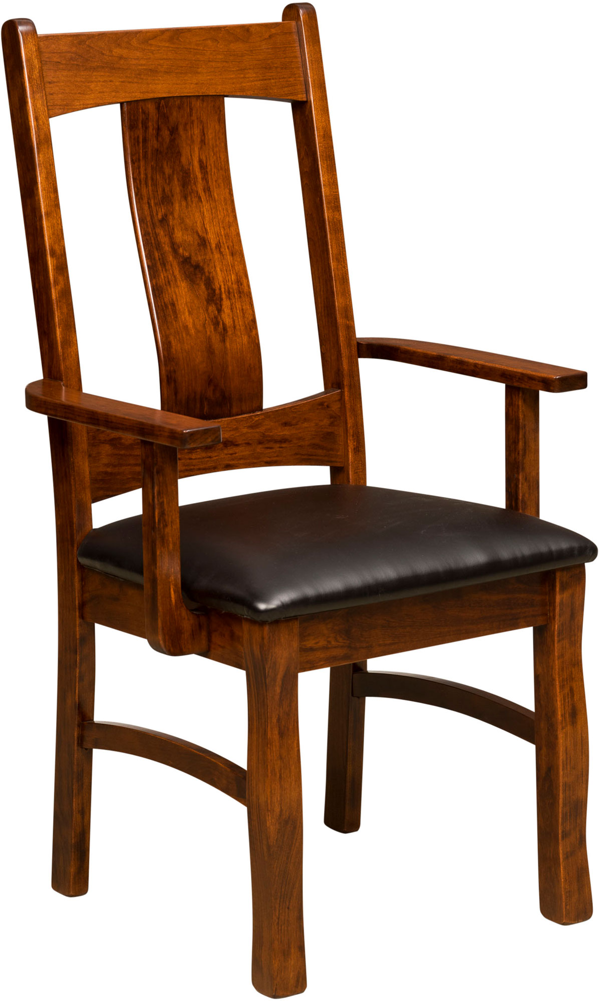 The Reno Dining Chair fills your desire for a great-looking, comfortable and sturdy dining chair to complement your impressive dining table. Check out the gentle curves in the backrest, stretchers and legs. The curved slat provides great lumbar support, while the upholstered seat enhances comfort. (A wood saddle scoop seat is available.) Also, you can order your set of chairs in your choice of side chairs and/or armchairs. Amish cabinetmakers — the best in the Midwest — build the chair. And they use top hardwoods like maple, oak and cherry (shown with Michael’s Cherry Stain). No wonder the chair is so sturdy, it’s heirloom-quality! Ready to order? Click the “Customize this product” button below. Then, fill out the customization fields. Or call 877-357-2106.