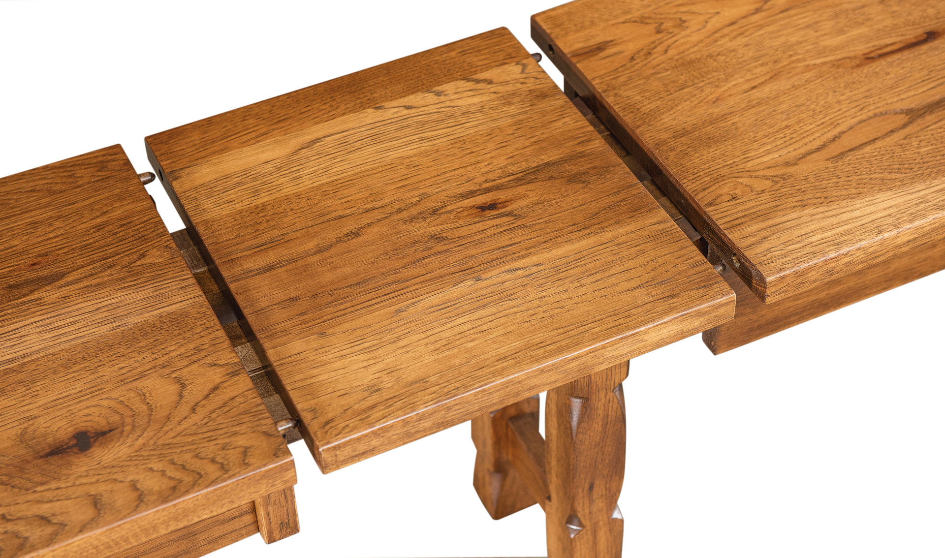 The Rock Island Extenda Bench is the perfect choice for your dining room, hallway, entryway, or elsewhere in your home. Why? Take looks. The carved corner posts and legs along with a burly profile catch the eye. Then there’s flexibility. We offer the bench in a length of 4 feet. Yet, you can extend it with up to four leaves. A leaf-storage box makes storage easy. What’s more, the Rock Island Extenda Bench is heirloom-quality. Because Amish cabinetmakers — the best in the Midwest – handcraft each bench. They use top hardwoods. Like oak and rustic hickory (shown with Tavern Stain). While the top is 1-inch-thick solid hardwood. To order, click the “Customize this product” button below. Then, complete the customization fields. Or call 877-357-2106.
