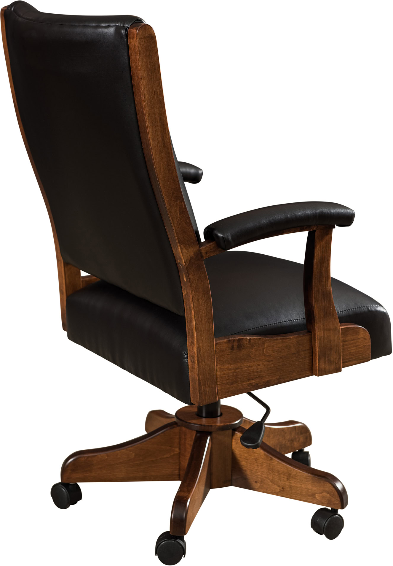 The Roxbury Chair delivers the highest levels of comfort, convenience and prestige. So, it should be on the short list for your home office. You’ll love settling into the plush upholstery. A handy gas lift adjusts the chair’s height with a slight lever movement. Also, the chair’s tilt can be configured to any tension. Amish cabinetmakers – the best in the Midwest — build the chair. And they use top hardwoods like oak, maple and cherry. No wonder the piece is so beautiful, sturdy and heirloom-quality! For the seat, you can choose from a plethora of fabrics or leather (shown). Ready to order? Click the “Customize this product” button below. Then, fill out the customizing fields. Or call 877-357-2106.
