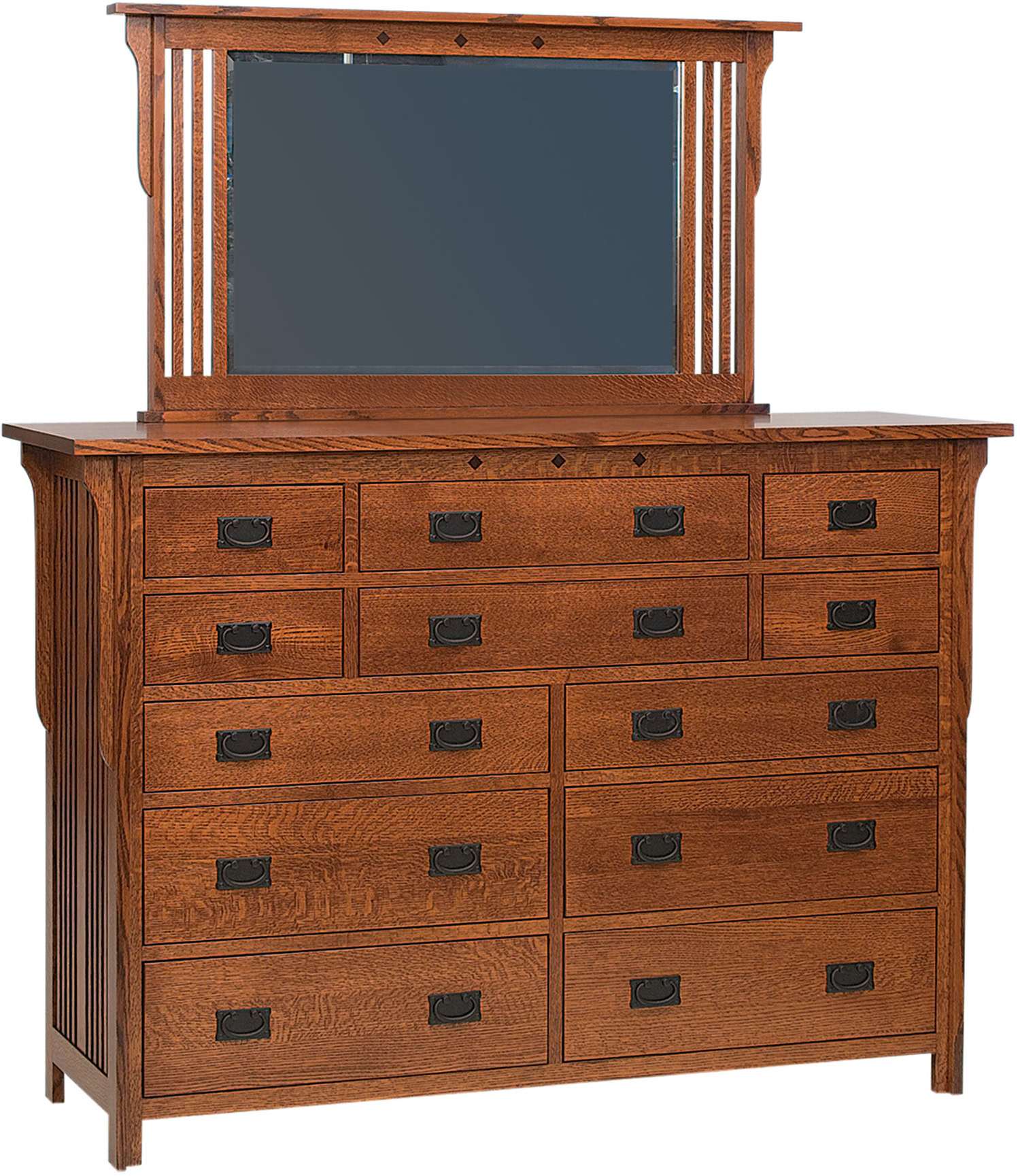 The classically-styled Royal Mission Large Dresser boasts ample storage space. It is made with the finest hardwoods by Amish artisans. The modern style of the collection shines through with the rich stain. Since there are a variety of drawer sizes, it makes this a great all-purpose dresser for any bedroom.