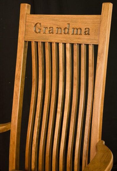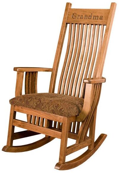 Amish-built from solid wood, the Royal Mission Grandma Rocking Chair brings legendary Amish cabinetmaking and old-world charm into your home. The steam-bent slats give you good lumbar support. And you can choose a wood or padded seat – fabric or leather. While the custom engraved headboard adds a nostalgic touch. Our Amish cabinetmakers – the best in the Midwest — build the chair. And they use top hardwoods like oak, maple and cherry. They also use tried-and-proved skill handed down from their ancestors in the old country. This is why the chair is so sturdy and heirloom-quality! Are you ready to order? Simply click the “Customize this product” button below. Then, fill out the open (blank) fields below. Or call 877-357-2106.