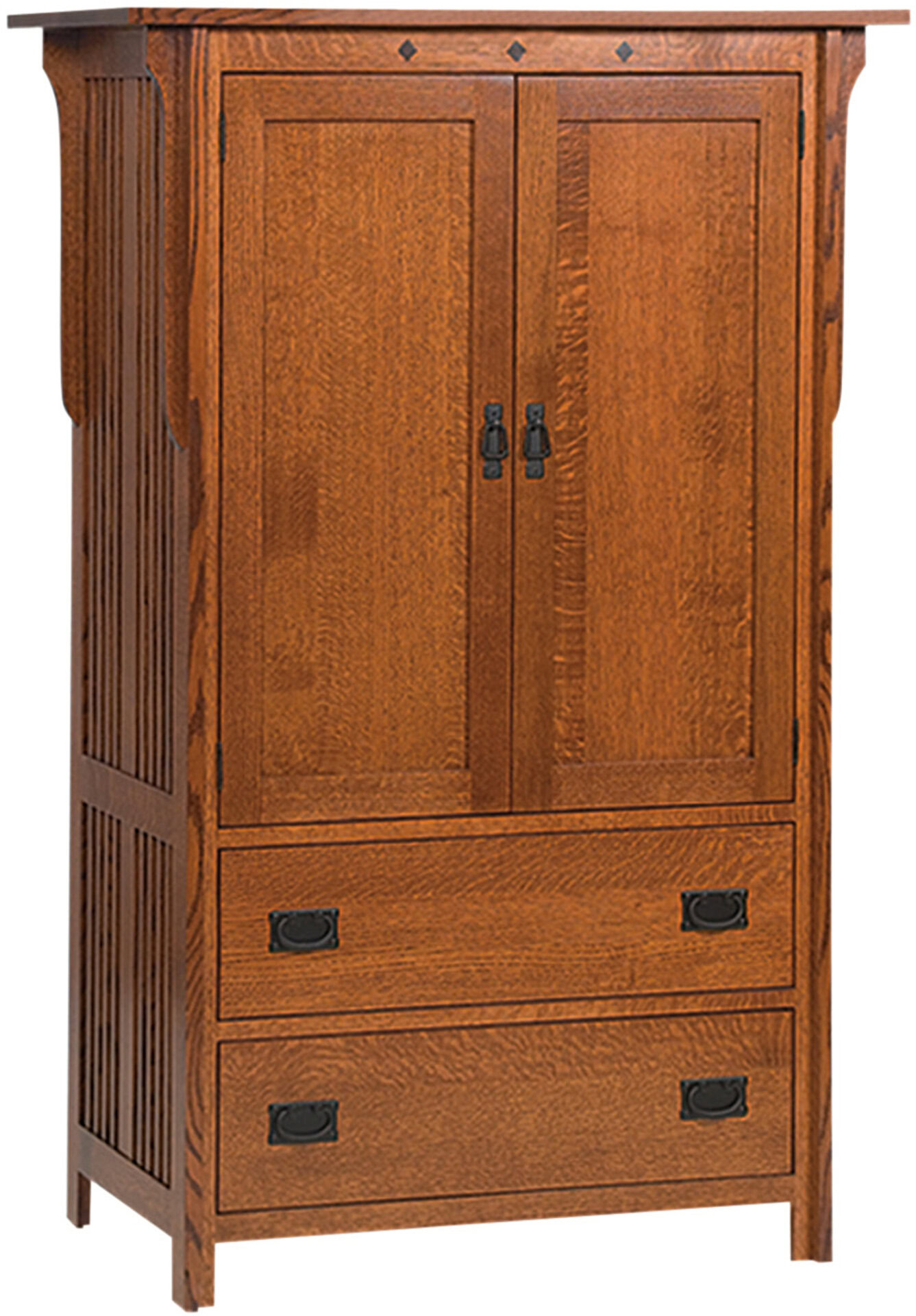 Wood slats and hand-crafted corbels accent the Royal Mission Hardwood Armoire.