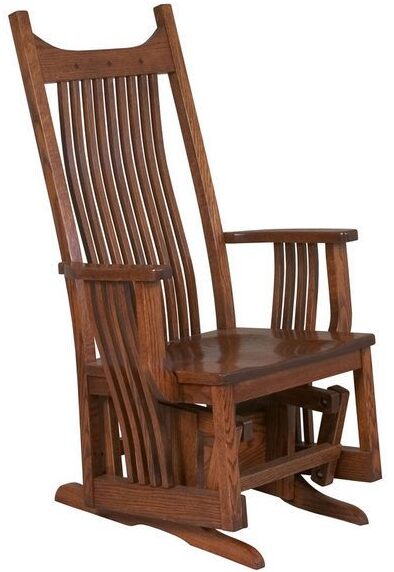 The Royal Mission Scoop Top Glider brings back the comfort and charm of an old Amish homeplace to your modern home. And you can choose a swivel chair, rocker or glider. Also, you can add a matching ottoman. The steam-bent slats provide good lumbar support. And you can choose a scooped wood or a padded seat – leather or fabric. The headboard is also customizable. Options include a flat top headboard with custom engraving or a scooped top with inlays (shown). Our Amish cabinetmakers – the best in the Midwest — build the chair. And they use top hardwoods like oak, maple and cherry. No wonder the chair is so great-looking, sturdy and heirloom-quality! Ready to order? Click the “Customize this product” button below. Then, fill out the customization fields. Or call 877-357-2106.