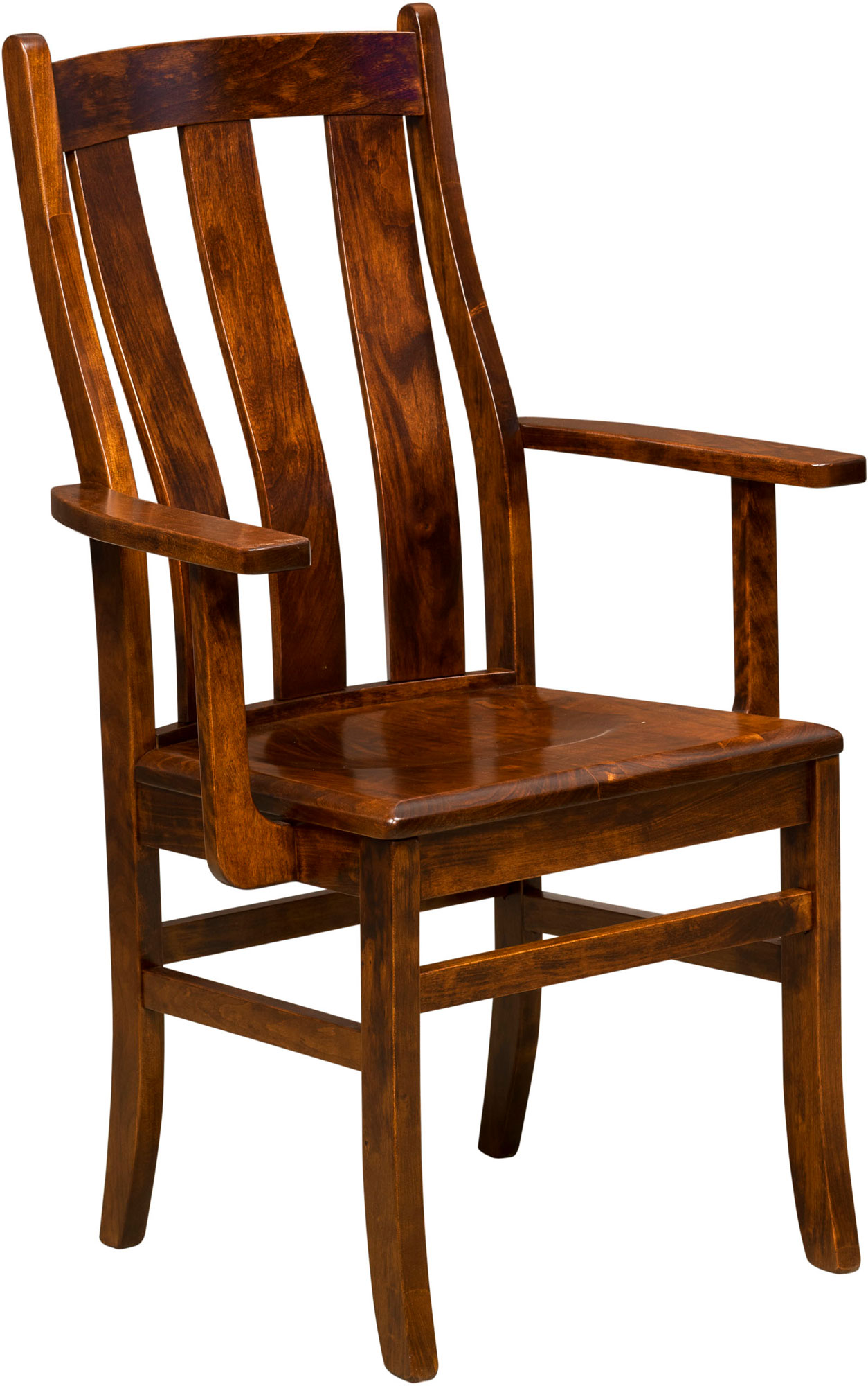 Three wide, curved slats and a round-over edge on the the seat give the Sahara Dining Chair a flowing, easy-on-the-eyes look and feel. What a lovely choice for your upscale dining room! We offer the unit as a side chair or armchair. So, you can surround your dining table with either — or both — versions! Also, the saddle-scoop seat enhances comfort. Amish cabinetmakers — the best in the Midwest — build the chair. And they use top hardwoods like oak, maple and cherry (shown with Michael’s Cherry stain). No wonder the chair is so great-looking, sturdy and heirloom-quality! Are you ready to order? Click the “Customize this product” button below. Then, fill out the open (blank) fields. Or call 877-357-2106 today.