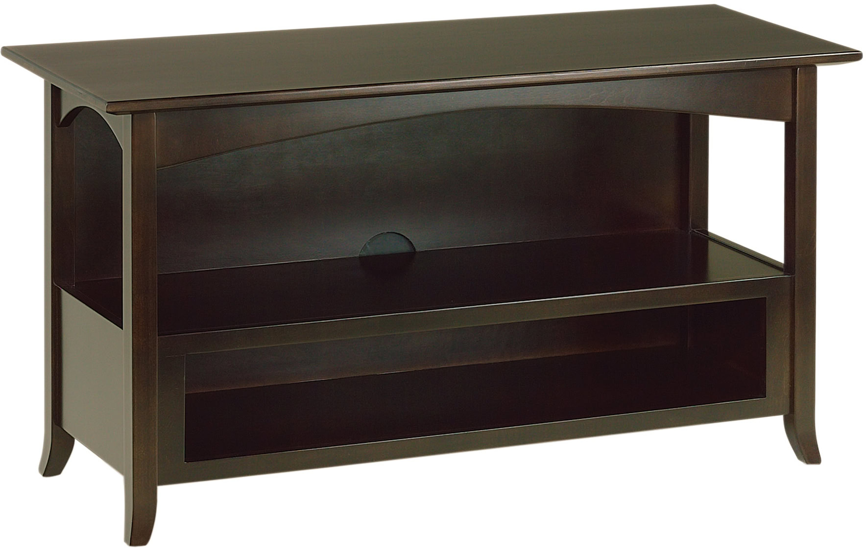 The Shaker Hill Open TV Stands feature a reverse beveled top, sleek finish, and delicate curves that give this Shaker styling a modern twist. These classic TV Stands provide ample storage space, so you can find the perfect spot for your devices and media accessories. A cord hole in the back of each stand also helps with cord management. Thus, keeping your entertainment area tidy and functional. With two size options, you can select the stand that suits your space and your TV dimensions.