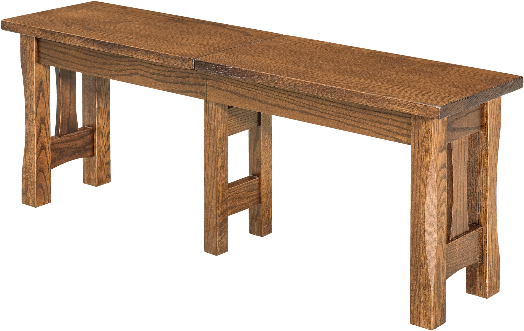 Amish artisans create the Sheridan Dining Bench to perfectly suit your preferences. The rich hardwood is finished in your choice of stain color to match any dining table. We offer the bench with a solid top or with extension leaves, which allow you to to accommodate any extra dining guests who might arrive. While not in use, the leaves store neatly in a storage box. This bench provides a great option for a smaller dining space. You should also consider the Sheridan Trestle Dining Table to create a complete set for your home.