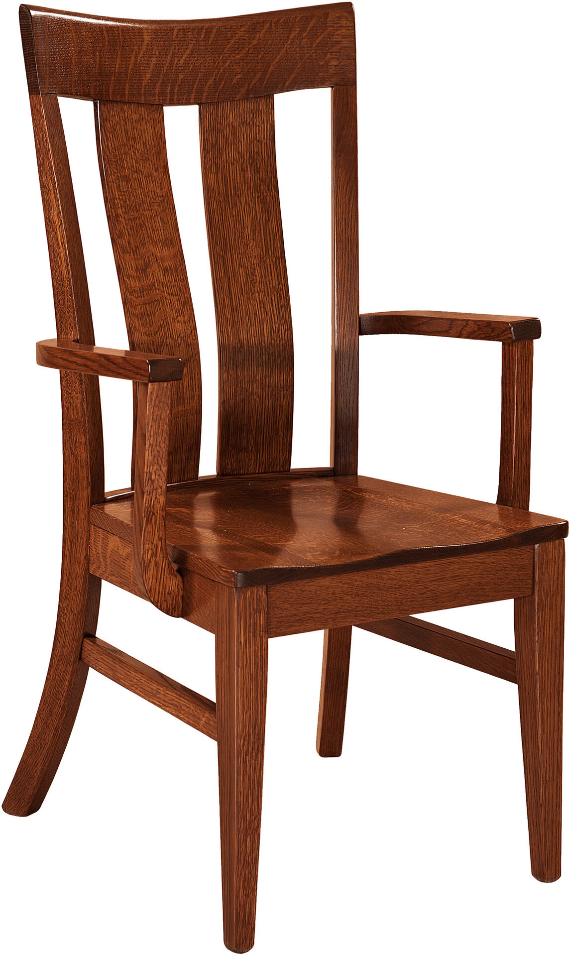 Broad, curved slats, combined with a robust Mission style and rich, genuine woodgrain give the Sherwood Chair a distinguished look. Making it an appealing choice for your trendy dining room. Also, we offer the Sherwood as a side chair and an armchair. So you can surround your dining table with any side-chair and arm-chair combination you like.