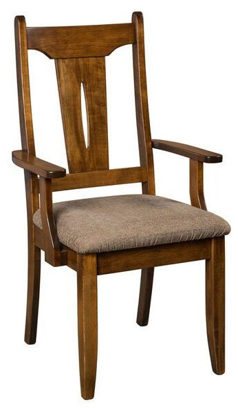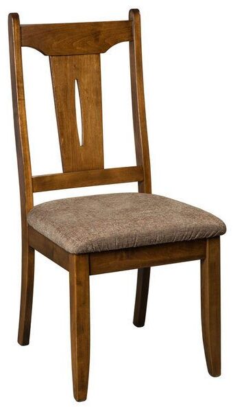 You’ve found a most elegant and stately chair to complement your dining table: the fabulous Sierra Dining Chair. Check out the artistic cutout in the backrest, plus the tapered feet and simple lines. The backrest provides great lumbar support. And for enhanced comfort, choose the upholstered seat, finished in leather or fabric (shown). Or, you can go with a wooden seat. What’s more, you can order your set of chairs in any combination of side chairs and armchairs. Amish cabinetmakers — the best in the Midwest — build the chair. And they use top hardwoods like maple, cherry and oak. No wonder the chair is so sturdy, it’s heirloom-quality! Ready to order? Click the “Customize this product” button below. Then, fill out the customization fields. Or call 877-357-2106.