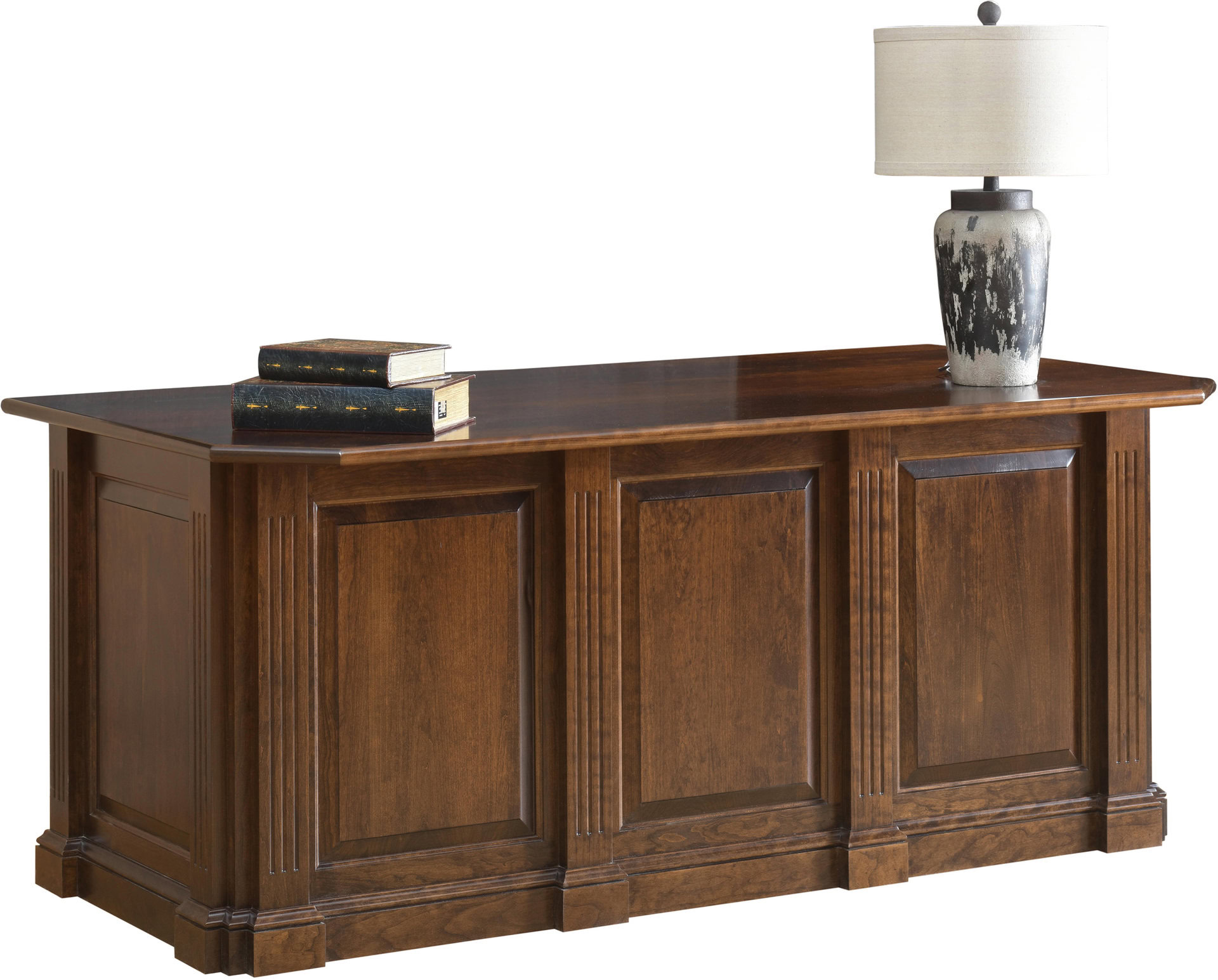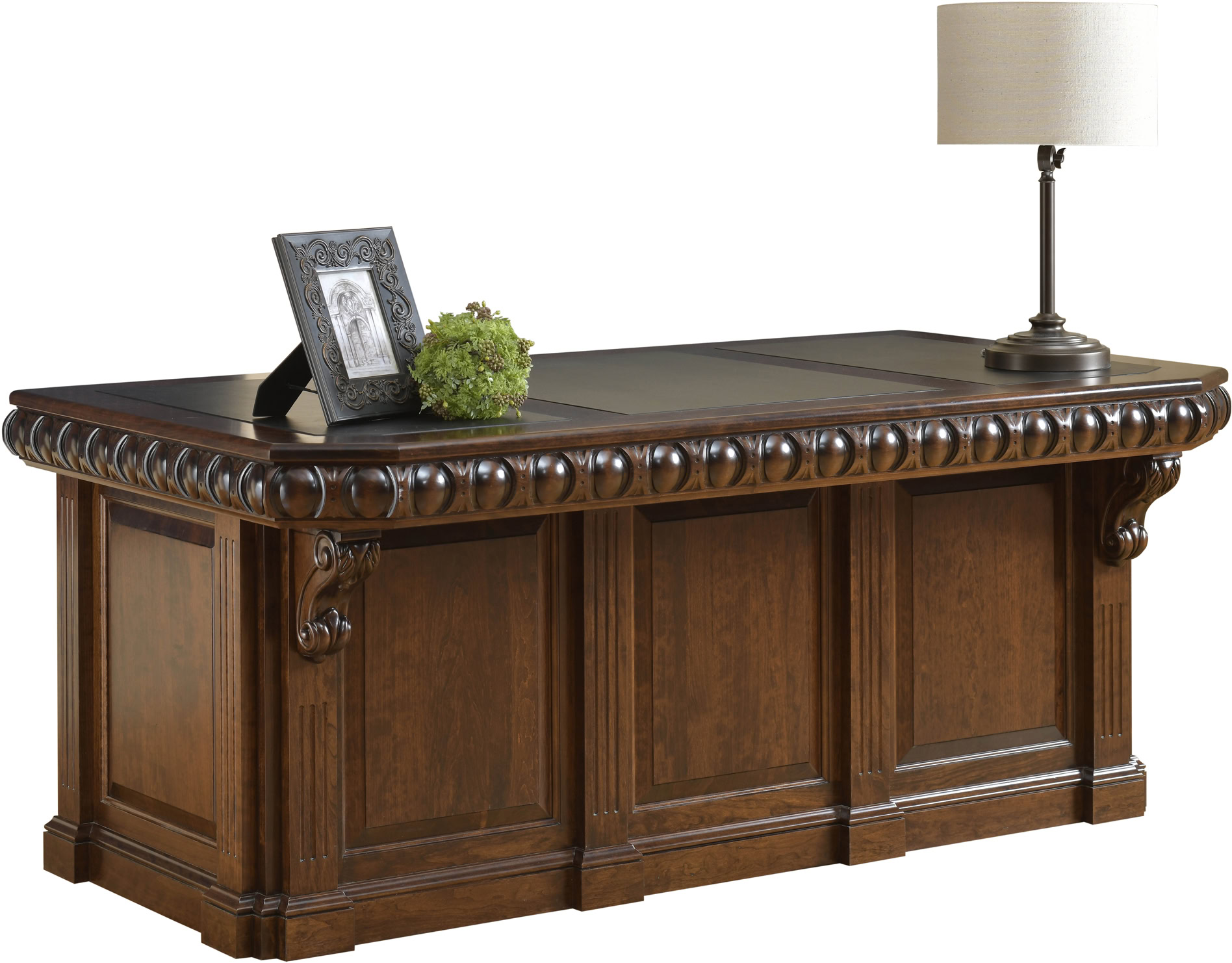 You can call the Signature Executive Desk the ultimate solid hardwood desk. With its fluted posts and panel sides. Choose the Premier Signature Desk. And you’re being dazzled by its ornate top molding. Decorative corbels. Plus the three-piece leather top. Also, the drawers open full extension. So you’ll enjoy easy access to everything. While the dovetail joints are unrivaled in strength. Amish cabinetmakers build each Signature Executive Desk. Also, they use top hardwoods. Like cherry, oak, and maple. No wonder the desk is so incredibly sturdy. Beautiful. And heirloom-quality. Ready to order? Click the “Customize this product” button below. Then, complete the “Customize Product” fields. Also, click the “Get your customized quote” button. Or call 877-357-2106.