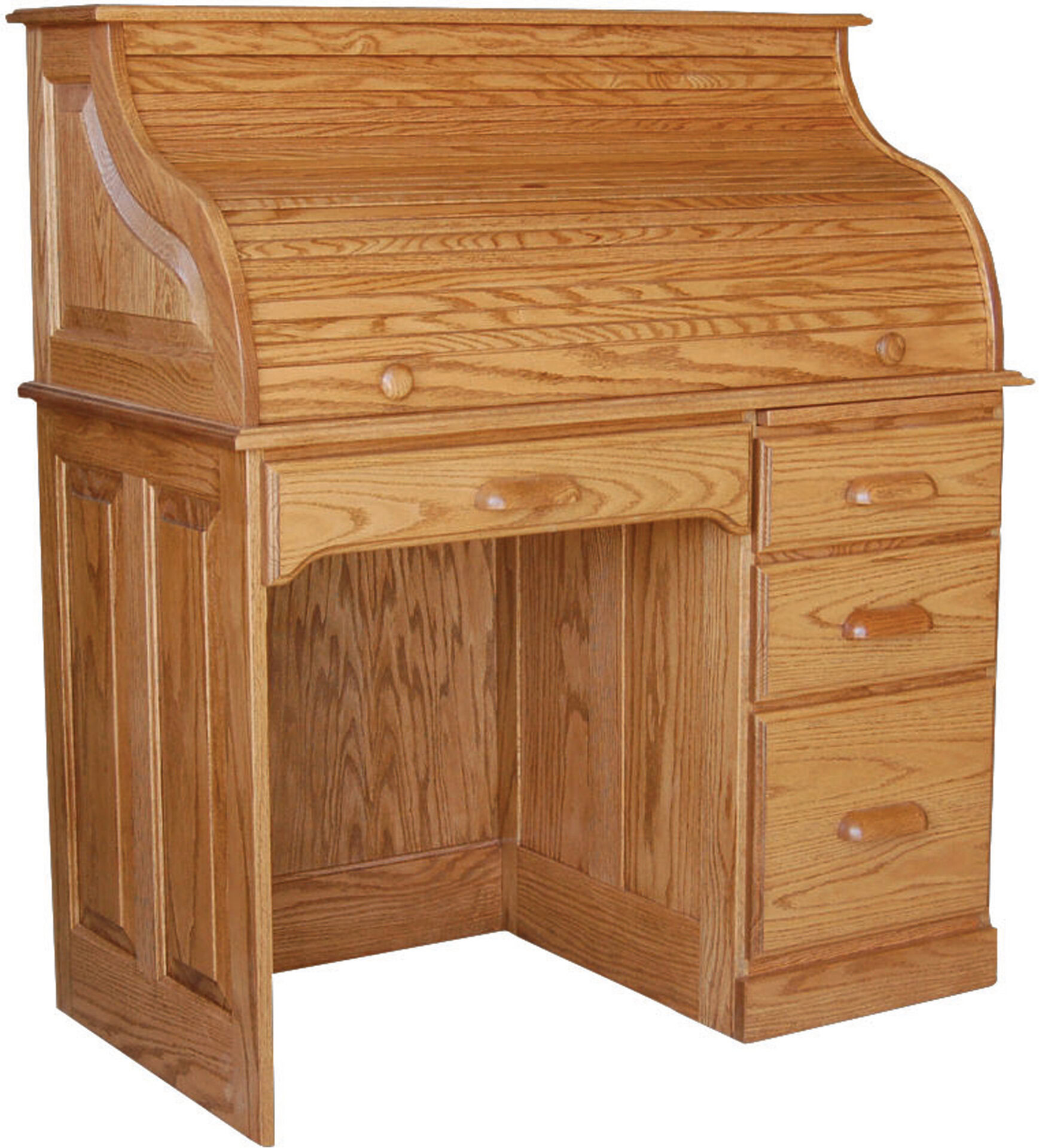 This Single Pedestal Small Rolltop Desk is a great addition to any home office. It is smaller than our double pedestal roll top desks, but it still packs in a lot of storage space. For instance, there is a letter size file drawer, small drawers for stamps, rubber bands and paper clips as well as a space to organize your bills. You can rest knowing our Amish craftsmen make it out of the finest hardwoods. So, the quality of this desk comes standard. Also, this roll top will keep all of your confidential files out of sight.