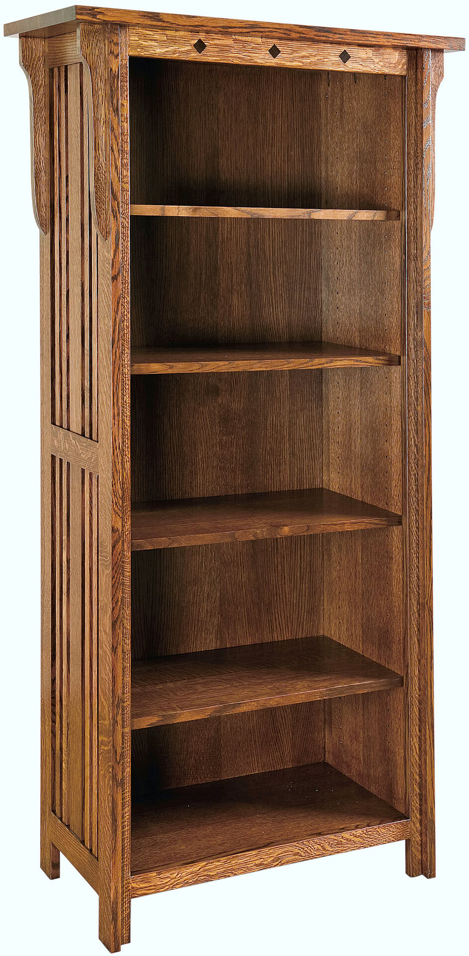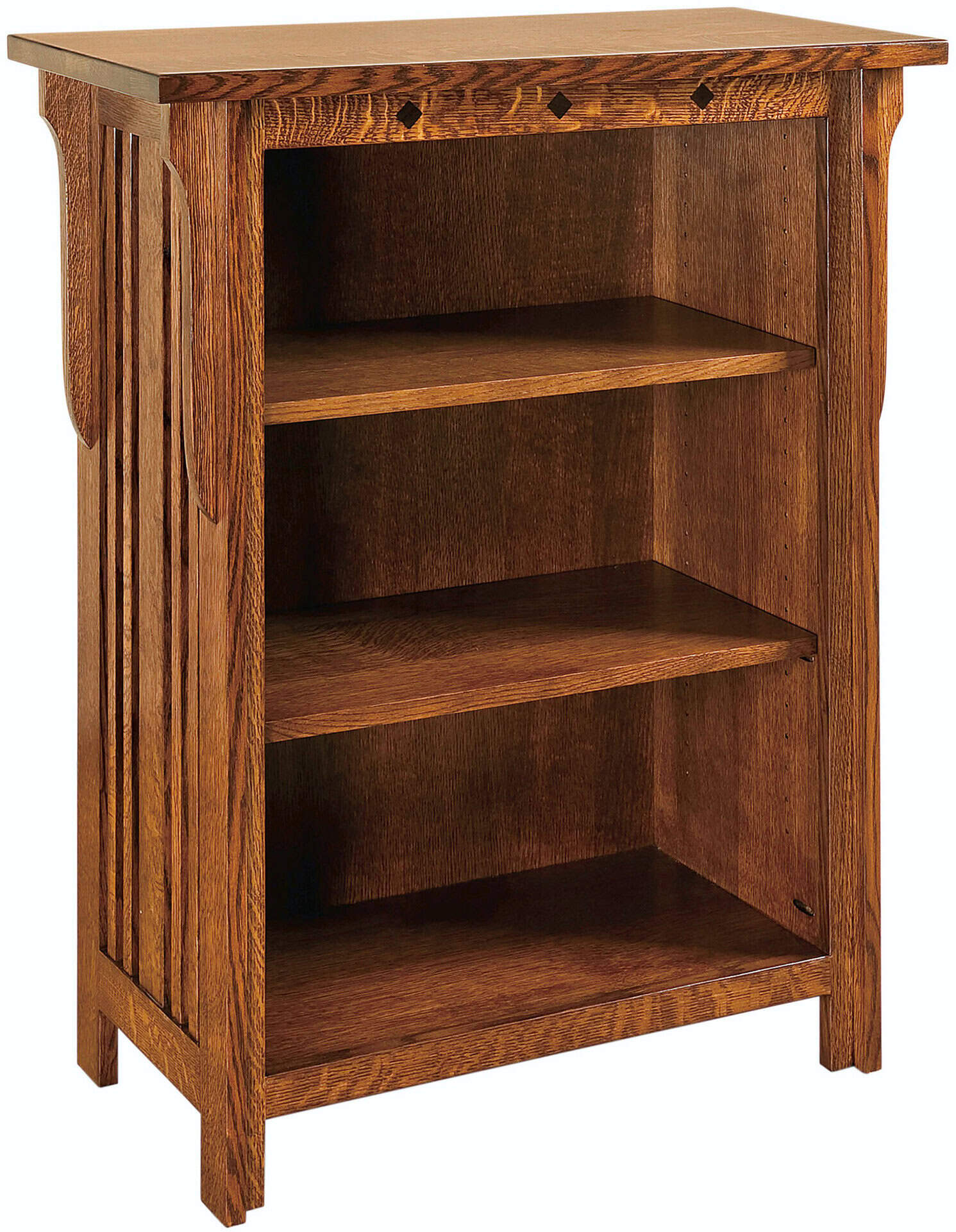 The Straight Royal Mission Bookshelf boasts a classic Mission style. Distinct details such as the slatted sides, corbels and walnut diamond inlays really help it stand out. Additionally, it even comes with adjustable shelves. So, now you can display whatever you like. No more worrying about it not fitting on the shelf since you can adjust them as needed. We offer this bookcase in three different sizes, so you can choose the piece that perfectly suits your needs! Be sure to take a look at all of our other Straight Royal Mission furniture pieces, too. Then, you will have a beautifully coordinated room ready for you to work or entertain.