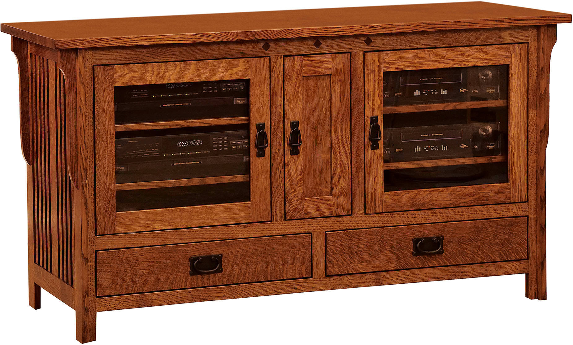 The Straight Royal Mission Wide TV Stand offers plenty of storage space in a stylish package. The stand even comes in an XL model which provides more depth, should you need it. Soft-close doors are just one of the standard features that elevate this stand above the rest. Wood inlays and corbels also enhance the design of this inherently beautiful stand. It is the perfect size for any room, so you truly cannot go wrong with this lovely TV console.