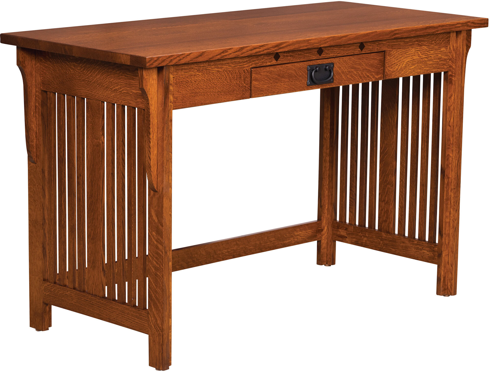 The Straight Royal Mission Writer’s Desk has beautiful features. You can see this in its side slats, wooden corbels and diamond inlays. Additionally, it features a full-extension drawer. So, now you can utilize the entire drawer without worrying you will never see an item pushed to the back of the desk again. If you like this Straight Royal Mission style be sure to search our other products in this line. For instance, we have coordinating desk chairs and bookcases that would complete your office space.
