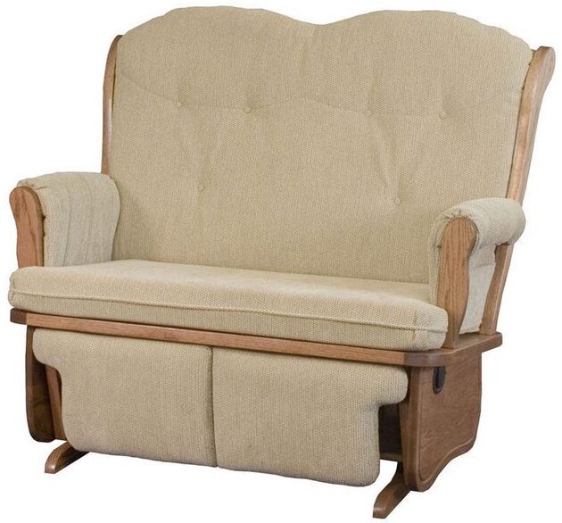 Hour after hour of comfort and relaxation await you in the Swanback Amish Loveseat Glider. You’ll love settling into the plush seat with its 4-inch cushions. The smooth-gliding mechanism offers hours of relaxation. For even more comfort, ask for the flip-out footrests. Prefer another fabric choice? You can choose from lots of fabrics – or faux or real leather! Amish cabinetmakers – the best in the Midwest — build the glider. And they use top hardwoods like oak, maple and cherry. No wonder the piece is so sturdy and heirloom-quality! Ready to order? Click the “Customize this product” button below. Then, fill out the open (blank) fields. Or call 877-357-2106 today.