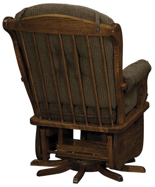 With its smooth glide mechanism, the Swanback Swivel Glider helps you get into countless hours of relaxation. And do so in style. You’ll enjoy settling into the plush chair with its high back and padded armrests. Choose the matching ottoman, and enjoy even more comfort. Or, you can go for the optional flip-out footrest. Plus, the swivel function lets you easily spin around and stay in the conversation. Amish cabinetmakers – the best in the Midwest – build the glider. And they use top hardwoods like oak, cherry and maple (shown). No wonder the unit is so sturdy and heirloom-quality! Ready to order? Click the “Customize this product” button below. Then, fill out the open (blank) fields. Or call 877-357-2106.