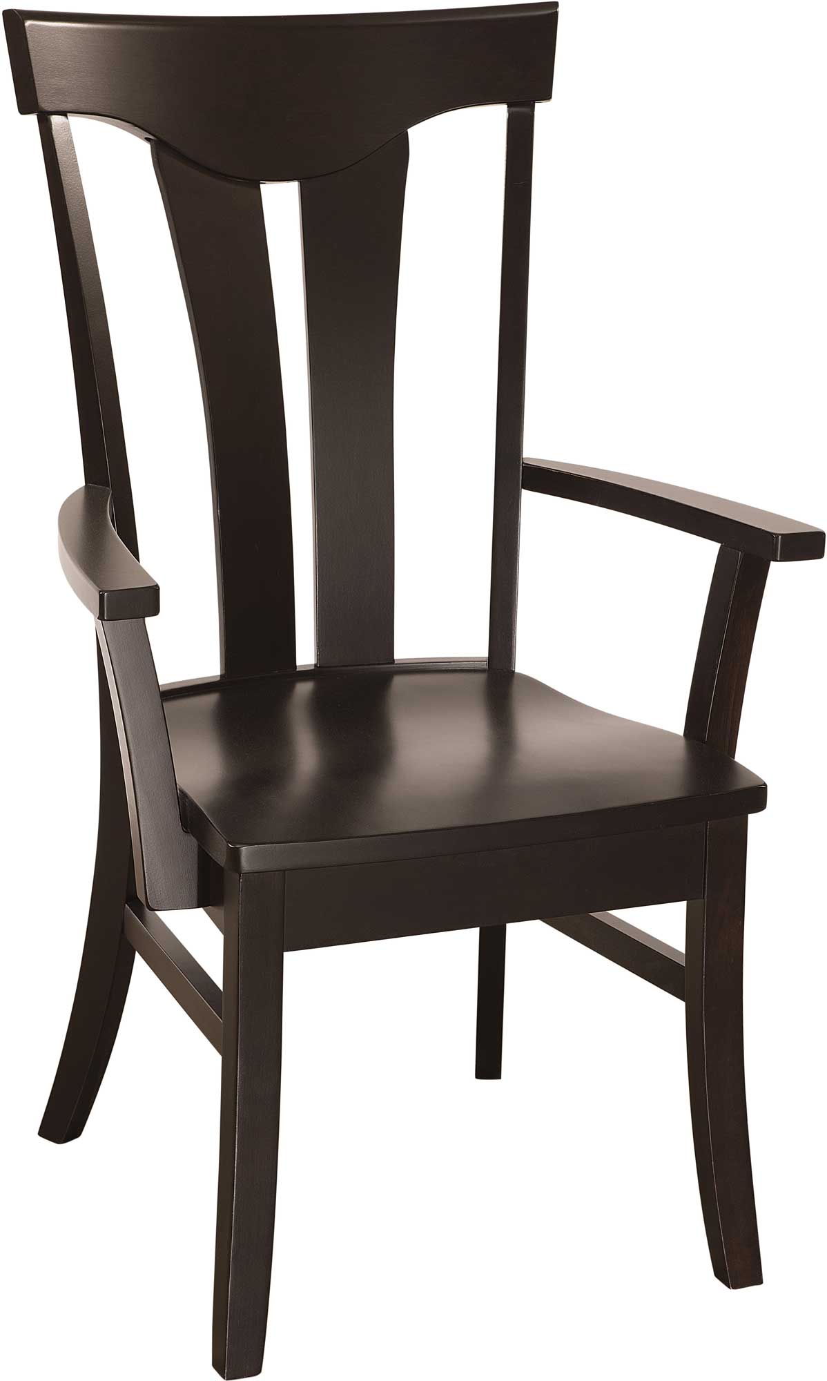 Sleek lines, a tall back and tapered wooden slats give the Tifton Chair a modern feel. In fact, the Onyx stain of the brown maple wood in the unit shown enhances the chair’s trendy look.
