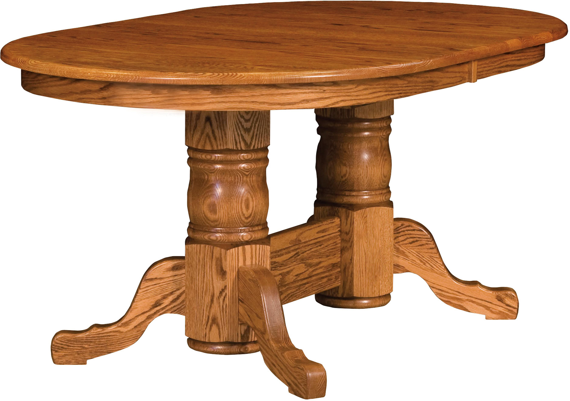 We construct the Traditional Double Pedestal Dining Table from the finest hardwoods. While the look shown on this page is a winner, you can choose from several options to create the look that suits your needs. This table features fine Amish craftsmanship, so it will stand the test of time. Since our pieces are not created until you order them, get started on yours today!