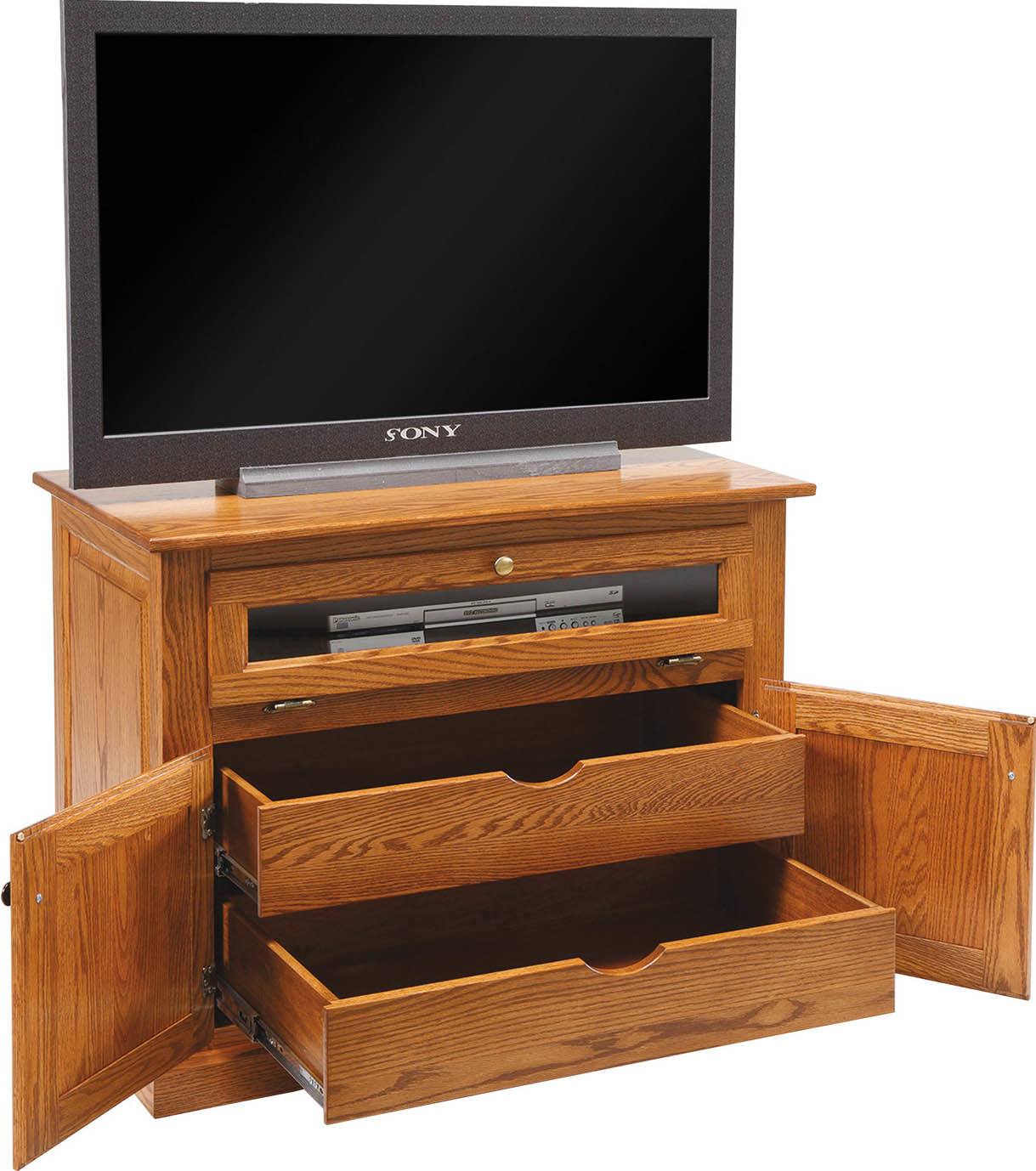 Paneled doors and sides beautifully accent the Traditional Supreme TV Cabinet. It is a lovely, simple piece of furniture that will complement any decor. This stand offers doors and drawers, so you can conceal your entertainment accessories while displaying your television.