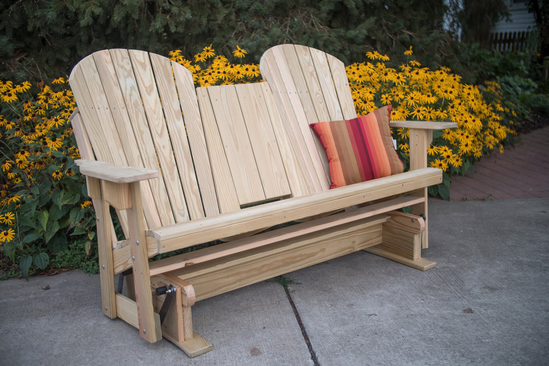 Skilled craftsmen designed the Treated Pine Double Adirondack Glider with a flip-down console that includes two cup holders. Therefore creating a unique glider for your porch or back patio. Constructed from solid pine, this sturdy glider is treated for pest damage, decay, and rot. With custom options available you can create the perfect glider for your outdoor space. One that will last for years to come.