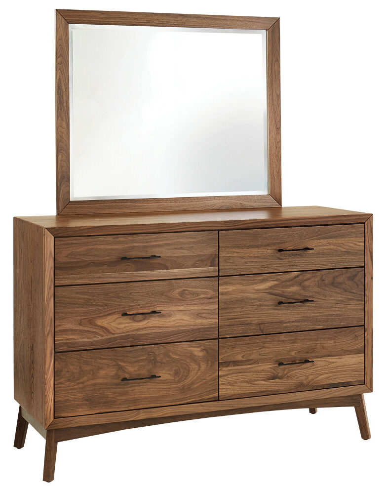 The Tucson Dresser with Mirror has clean Shaker lines. The simple fronts of the drawers bring a modern feel. It can be tailored to your taste with your selection of hardwood and stain color.