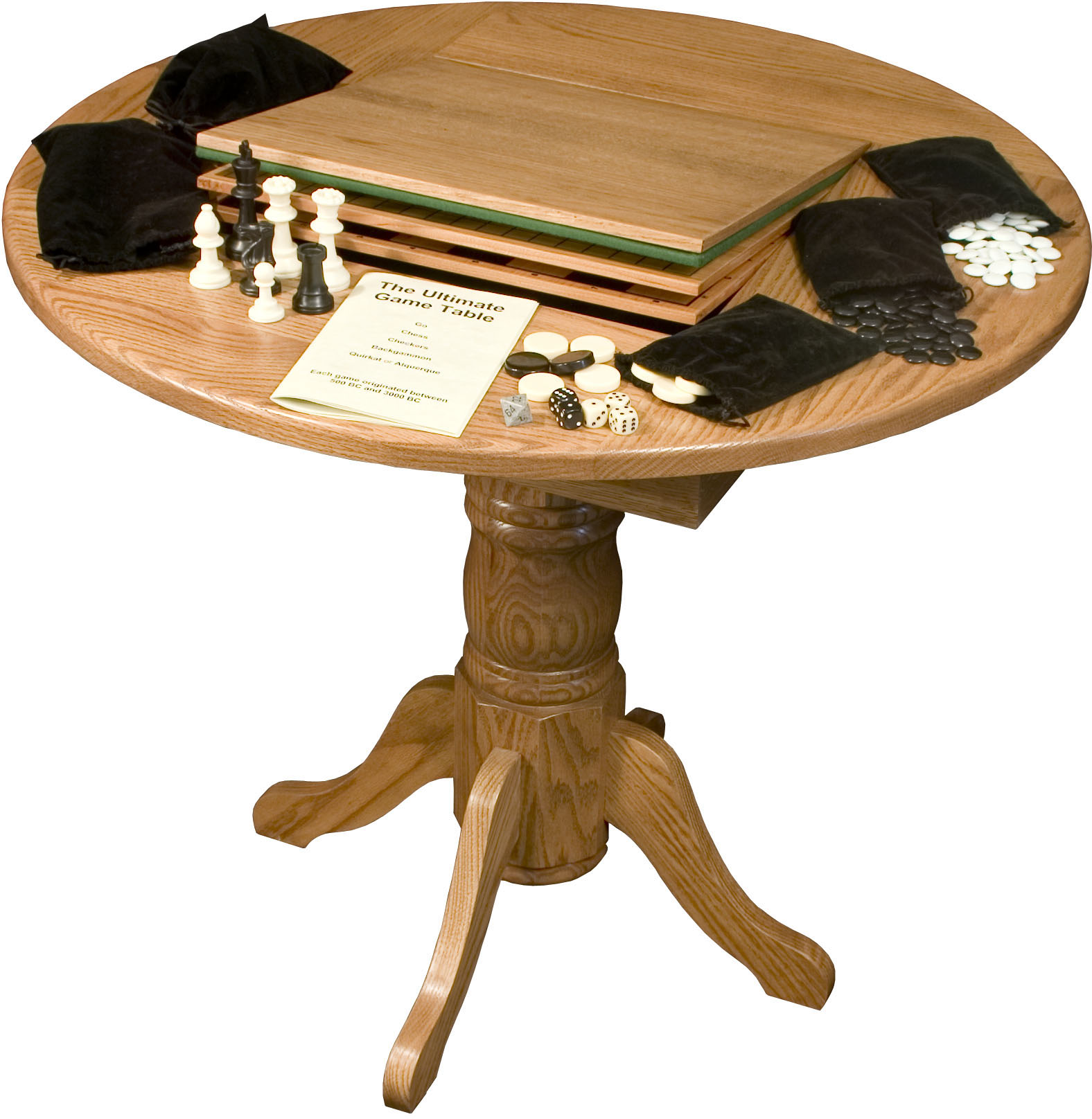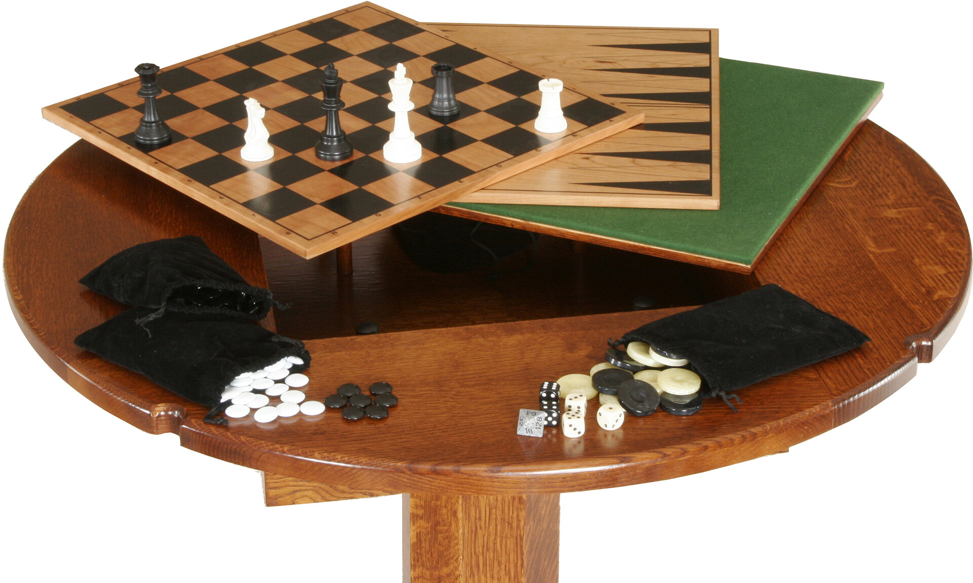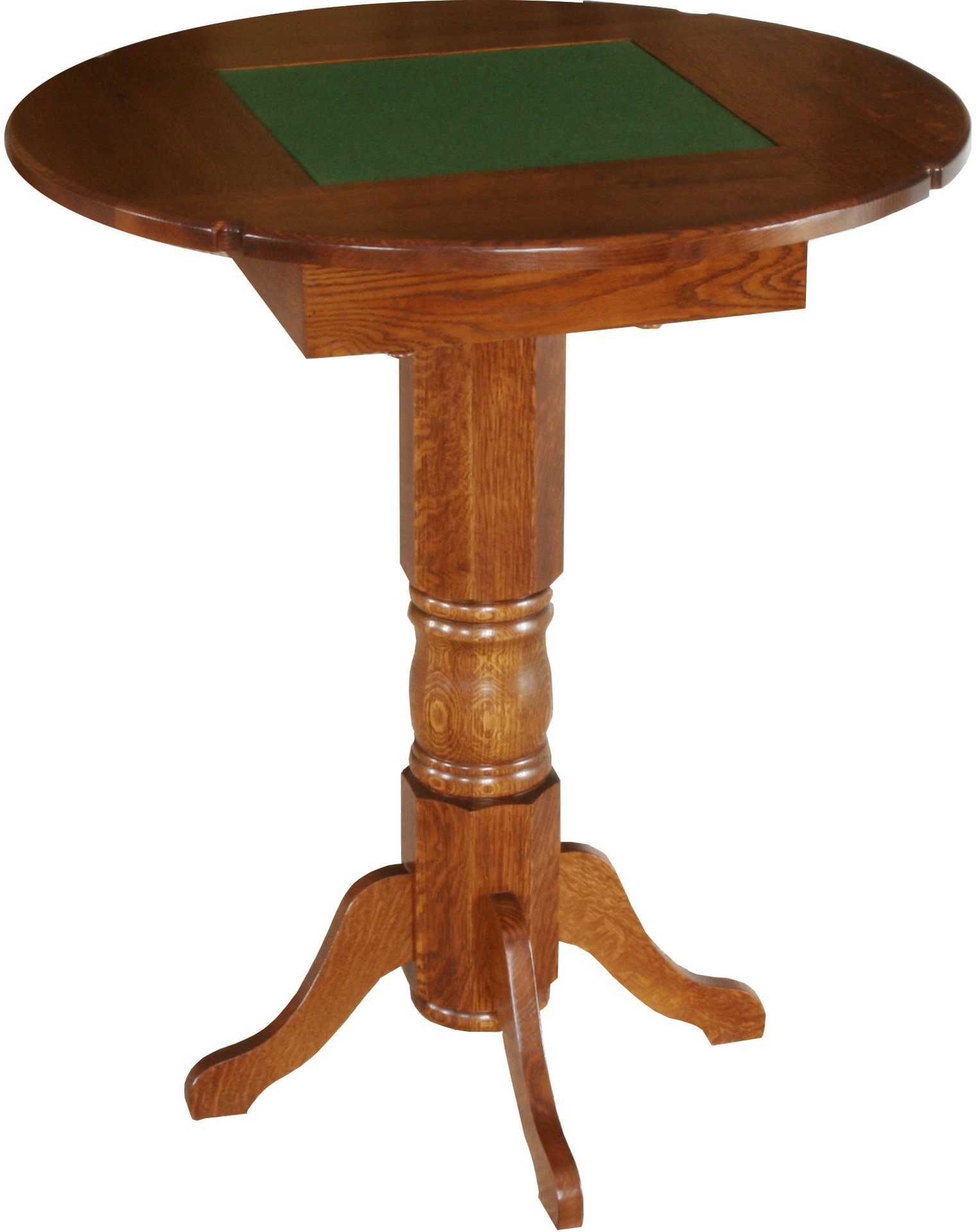 With the options of checkers, chess, Backgammon, Go and Aggravation, the Ultimate Game Pub Table is ready for your home. Imagine the countless hours of fun friends and family can have around this pub table! It has a reversible wood/felt top. So the table is ideal for serving food and drinks or playing cards and other games. Also, you can choose a traditional or Mission style pedestal. Amish cabinetmakers – the best in the Midwest — build the pub table. And they use top hardwoods like oak, maple and cherry. No wonder the piece is so beautiful, sturdy and heirloom-quality! Ready to order? Click the “Customize this product” button below. Then, fill out the customizing fields. Or call 877-357-2106.