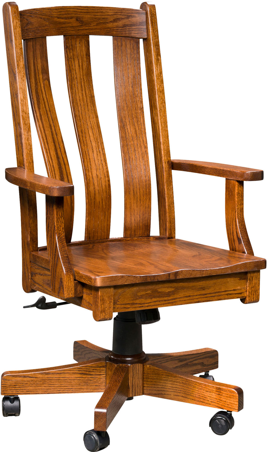 The Vancouver Hardwood Desk Chair brings to your home office the classic look of traditional office chairs plus the best of Amish solid hardwood cabinetmaking. The curved slats provide great lumbar support. While the scooped seat enhances comfort. A handy gas lift adjusts the chair’s height with a slight lever adjustment. Also, the chair’s tilt can be configured to any tension. Amish cabinetmakers — the best in the Midwest — build the chair. And they use top hardwoods like oak, maple and cherry. No wonder the piece is so sturdy and heirloom-quality! Ready to order? Click the “Customize this product” button below. Then, fill out the customizing fields. Or call 877-357-2106.