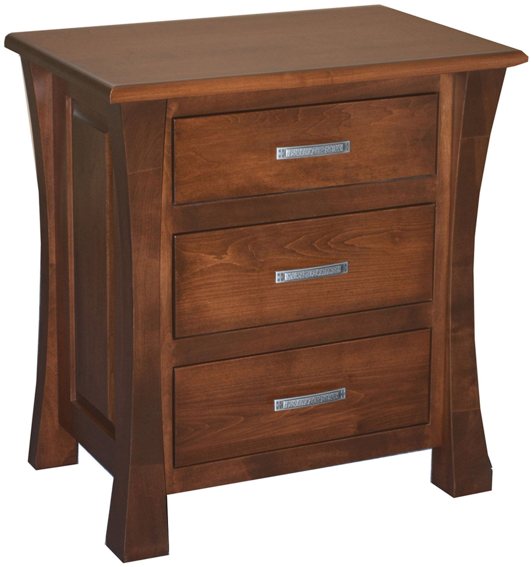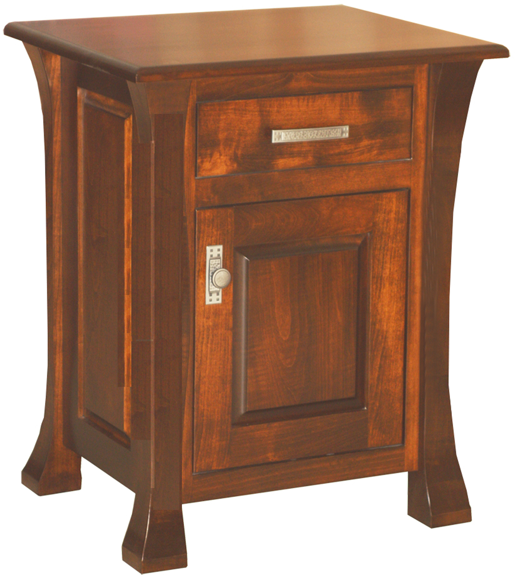 The Vandalia Nightstand is crafted by Amish artisans. The flare of the legs brings a beautiful modern style. Since all of our pieces are custom made, it will always be perfect.