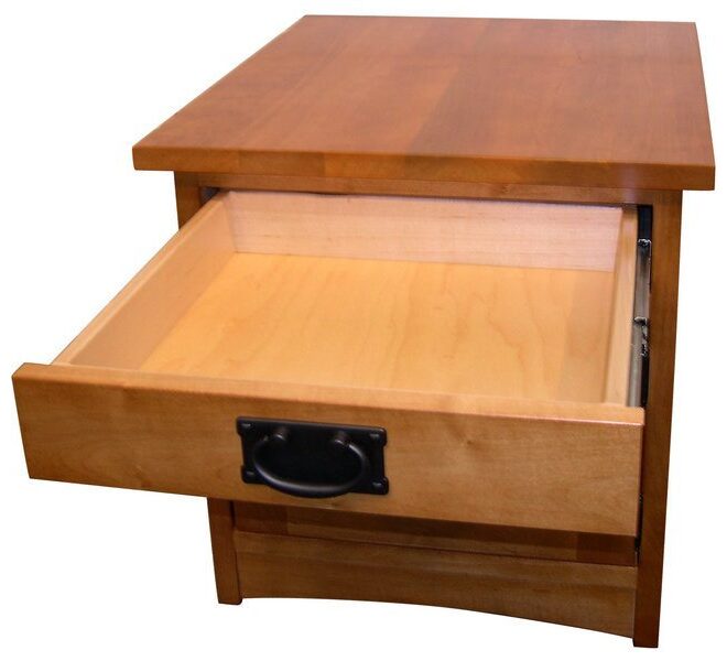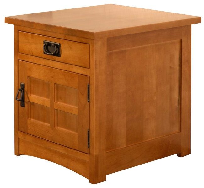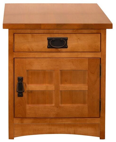 The Weaver Mission Nightstand represents the classic Mission style with a modern twist. Making it a great choice for your bedroom. Check out the reverse panel door with mullions plus the flush door and drawer. The 1-inch solid wood top and the black Mission Hardware reinforce the Mission identity. The drawer opens full-extension. This means easy access to everything inside. Including items at the back. While the dovetail drawer joints enhance strength. Amish cabinetmakers – the best in the Midwest – build the nightstand. And they use top hardwoods like cherry, maple and oak. No wonder the unit is so great-looking, sturdy and heirloom-quality! Ready to order? Click the “Customize this product” button below. Then, fill out the customization fields. Or call 877-357-2106.