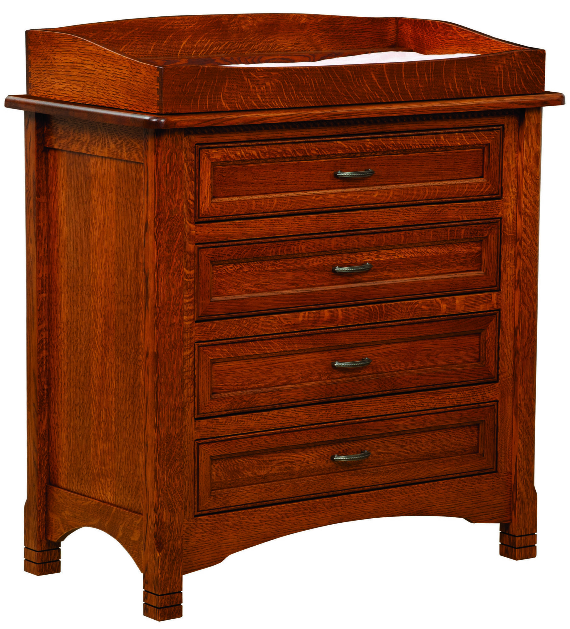 The West Lake Four Drawer Changer Dresser is a beautiful design that is meant to last with a growing child. The changer has legs with rounded edges and 4 full-extension drawers. Also, a beaded edge accents the drawer faces and a rope moulding gives it an impressive appearance. Add to the dresser by purchasing a matching conversion crib that can change into a toddler bed and double bed. Other additions for the set would include a chests, nightstands, and dressers. The quality of this bedroom furniture will last a lifetime.
