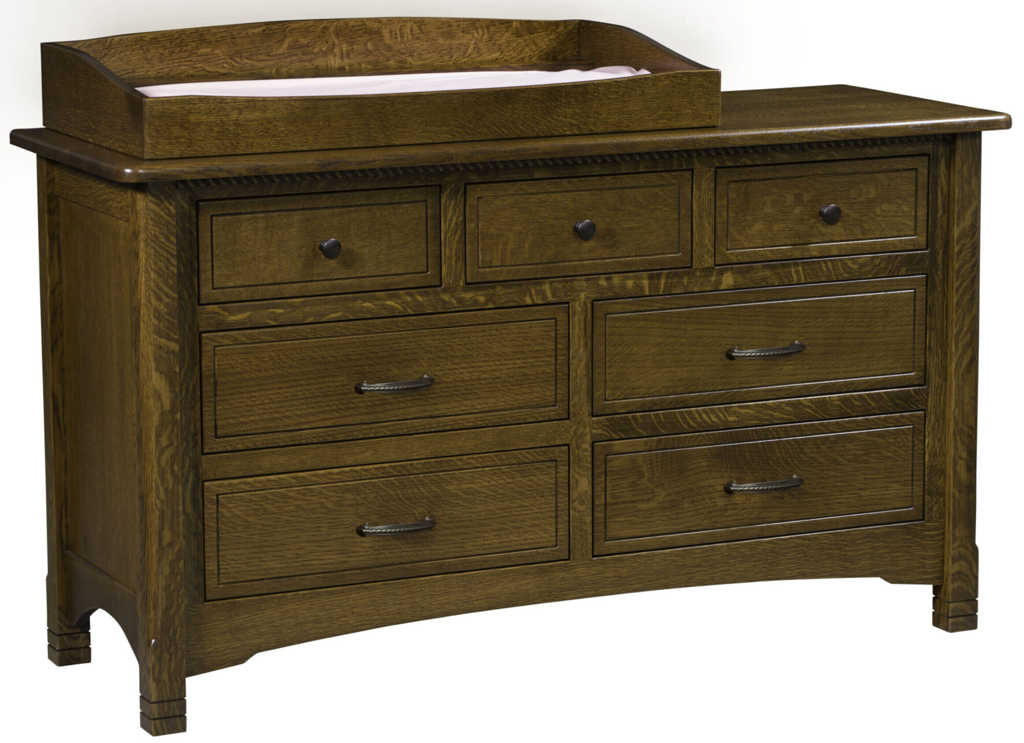 The West Lake Seven Drawer Changer Dresser is a beautiful design that is meant to last with a growing child. The changer has legs with rounded edges and 7 full-extension drawers. Also, a beaded edge accents the drawer faces and a rope moulding gives it an impressive appearance. Add to the dresser by purchasing a matching conversion crib that can change into a day bed and full bed. Other additions for the set would include a chests and nightstands. The quality of this bedroom furniture will last a lifetime.