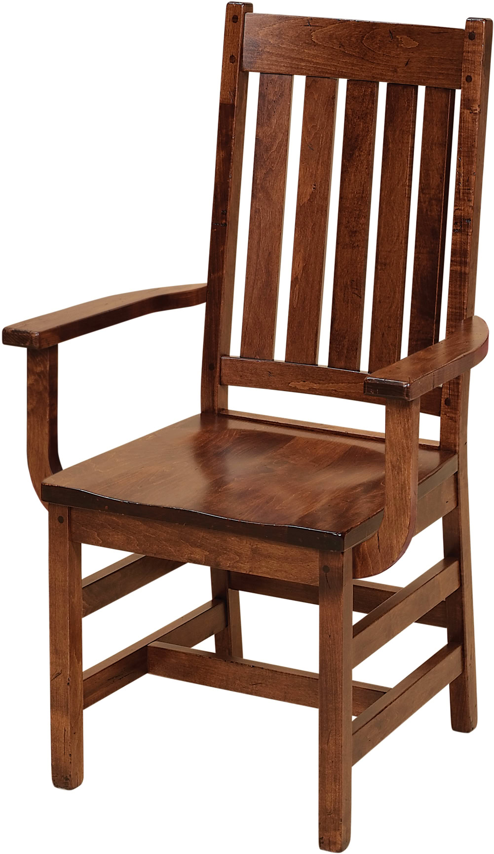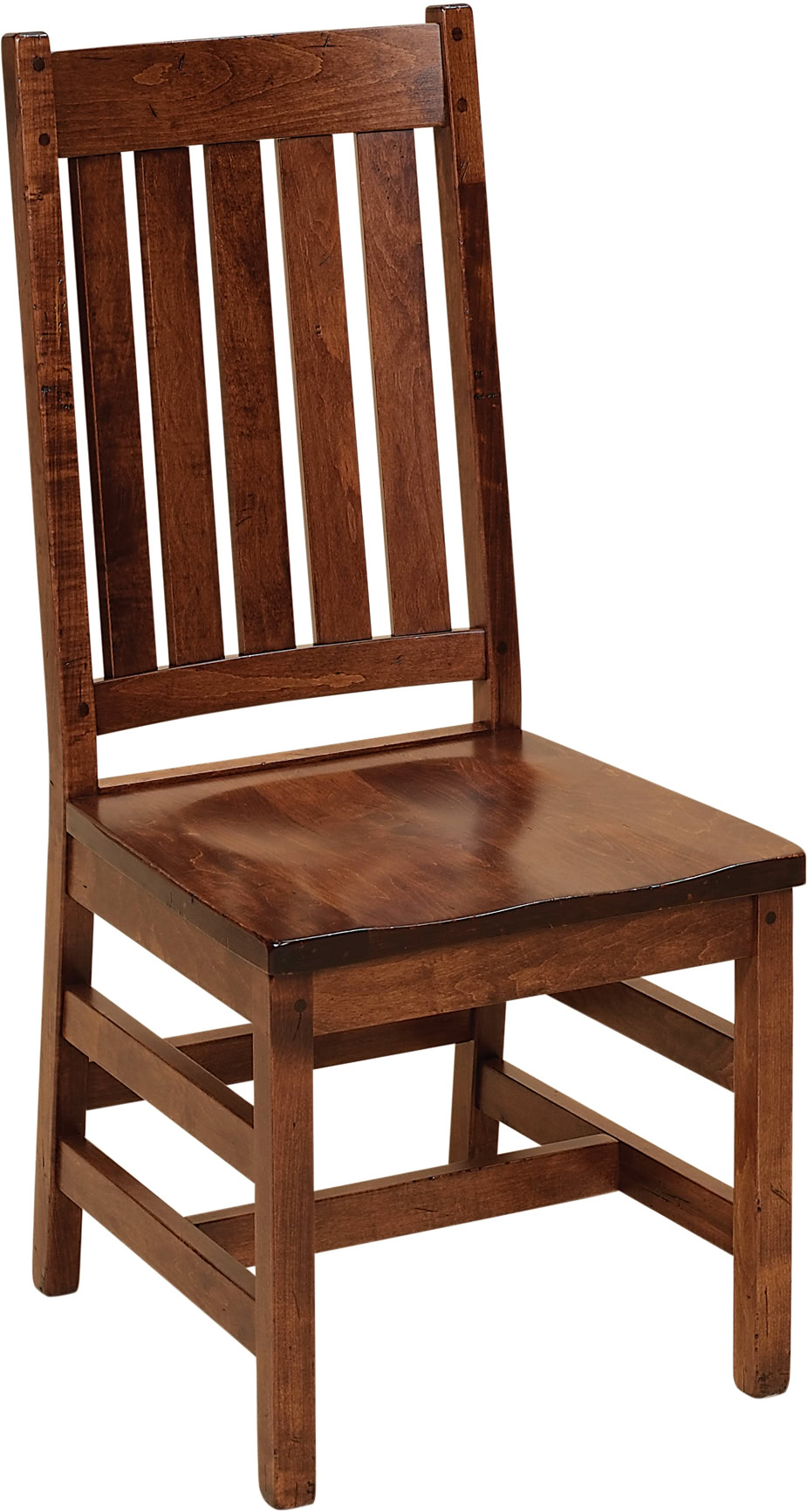 The Williamsburg Dining Chair showcases the best in Amish solid hardwood custom construction. Notice the expert craftsmanship displayed by the wood slats. Plus the wood dowels and the attractive finish. Also, the chair is Mission Style. So most likely it will blend perfectly with your existing furniture.