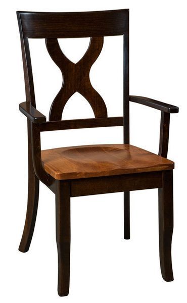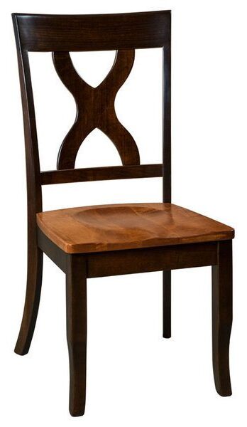 The decorative ‘X’ design in the backrest plus the two-tone finish give the Woodstock Dining Chair its exclusive look. Imagine how much this chair will enhance the look of your trendy dining room! The saddle scoop seat enhances comfort. And for even more comfort, request a fabric or leather upholstered seat. Amish cabinetmakers — the best in the Midwest — build the chair. And, they use top hardwoods like oak, maple and cherry. No wonder the chair is so sturdy, it’s heirloom-quality! Ready to order? Click the “Customize this product” button below. Then, fill out the customizing fields. Or call 877-357-2106.